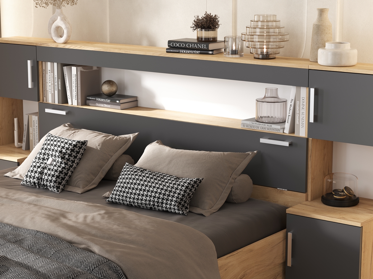 Бася Кровать 1,6м с надстройкой с тумбами