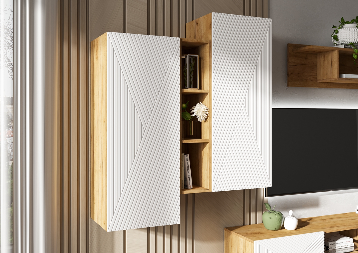 Флэш Тумба ТВ подвесная + Шкаф подвесной комбинированный + Полка навесная