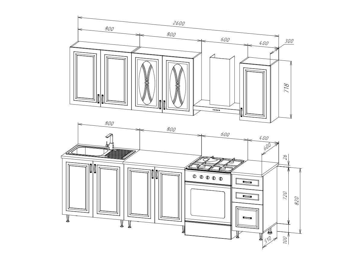 Кухня Констанция 2,0/900м Компоновка №4