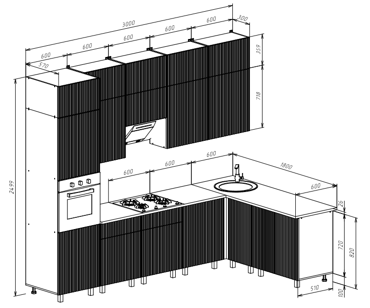 Кухня Оливия 3,0х1,8/1080м Компоновка №3