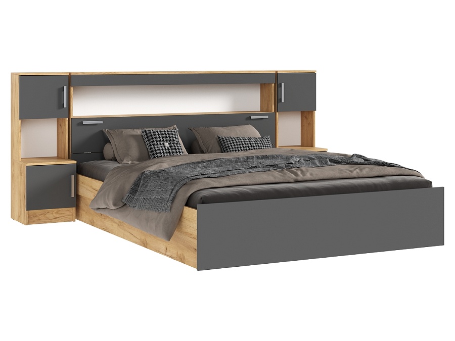 Бася Кровать 1,6м с надстройкой с тумбами