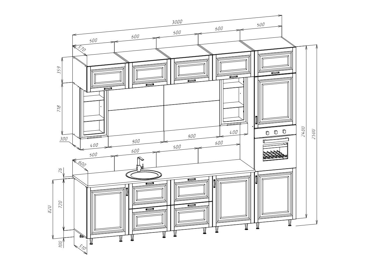 Кухня Престиж 3,0м Компоновка №2