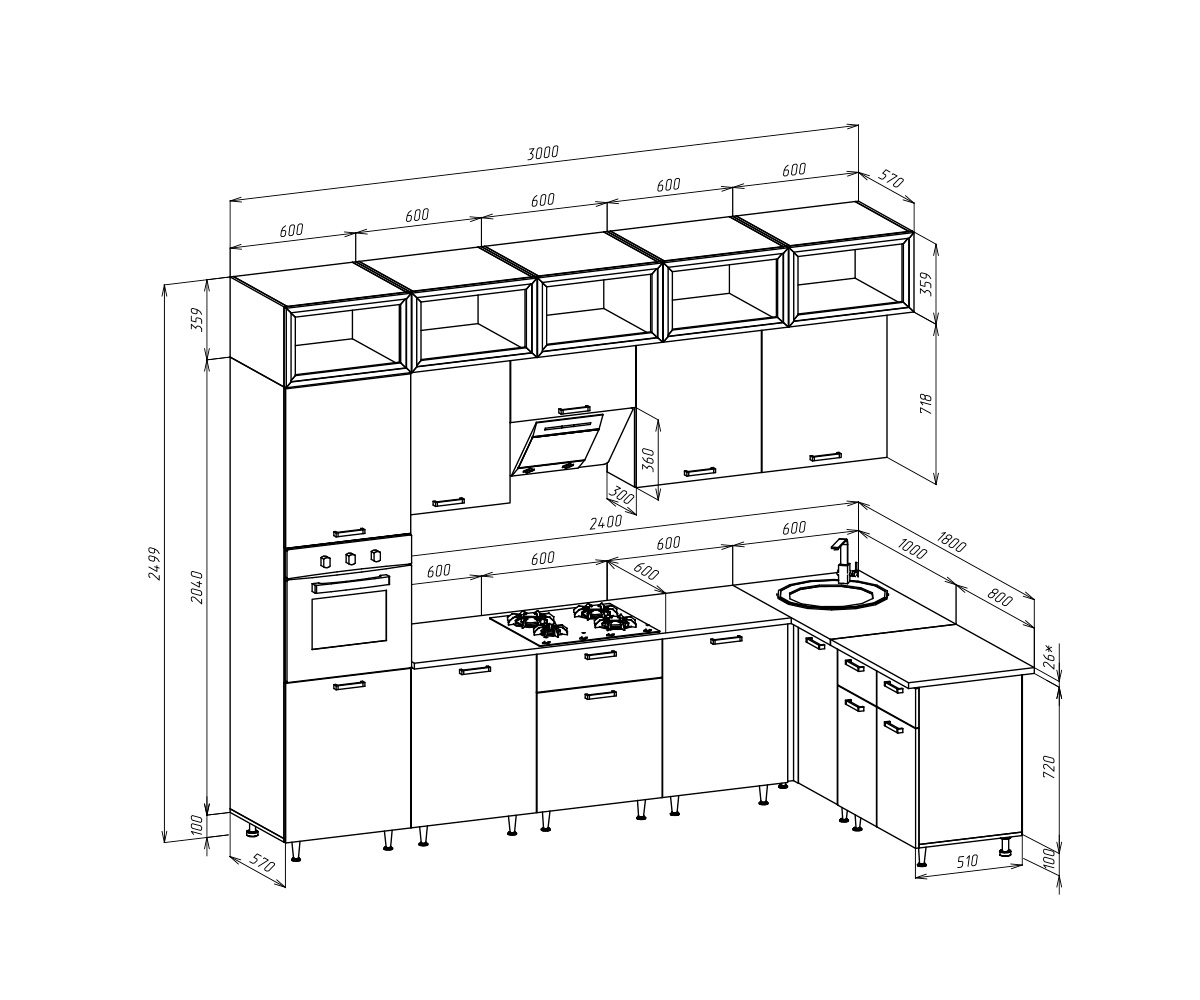 ЛДСП Кухня Рио NEW 3,0х1,8м/1080(490) Компоновка №5
