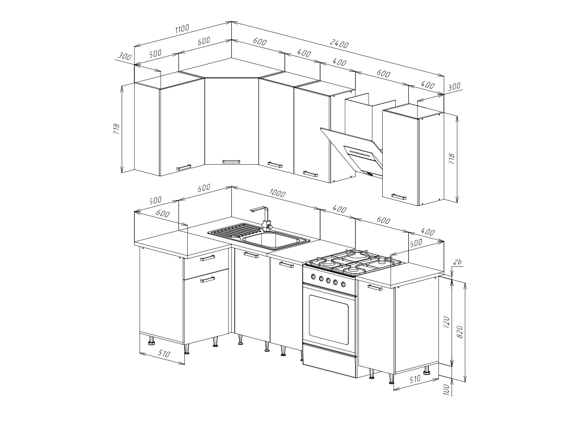 Кухня Техно 3,0х1,8/1080м Компоновка №6