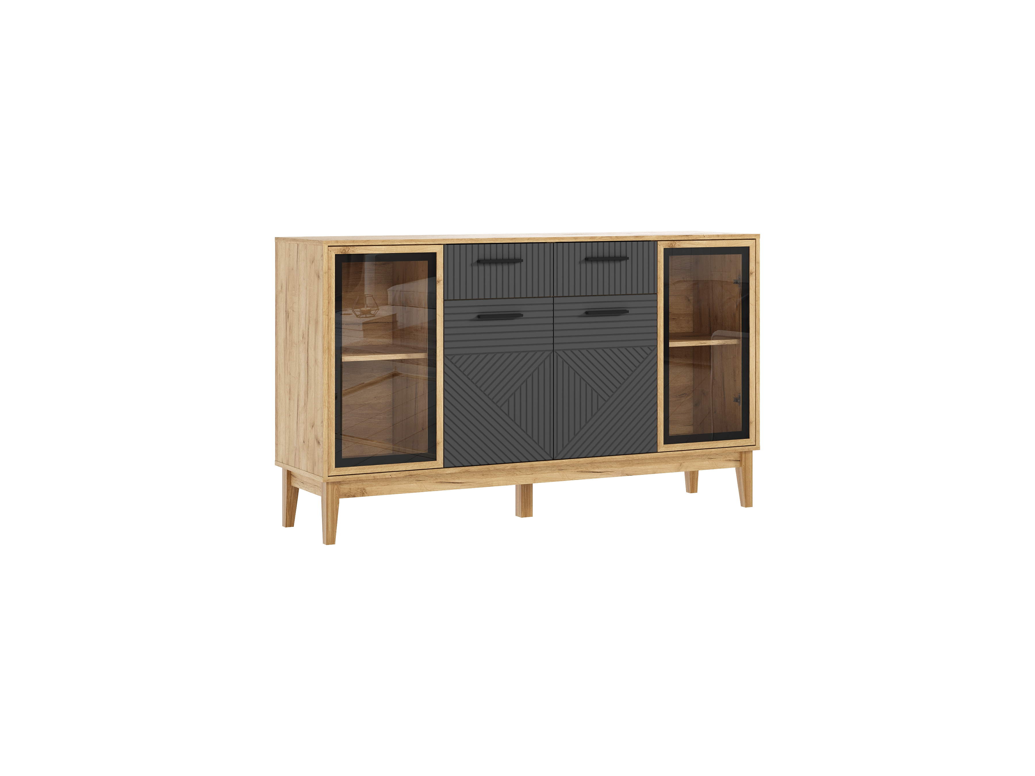 Флэш Тумба ТВ 2 двери 2 ящика + Шкаф (рамка AGT) + Комод (рамка AGT) + Шкаф навесной (рамка AGT)