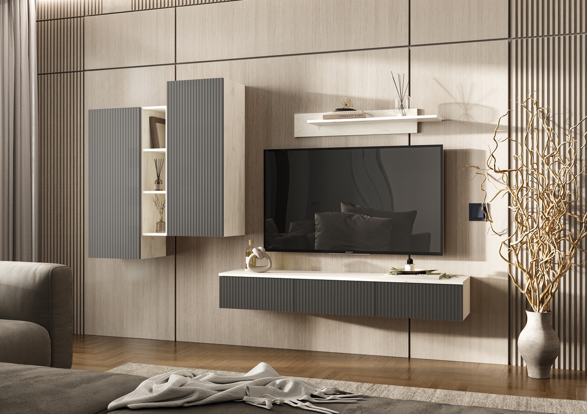 Оскар Тумба ТВ подвесная + Шкаф подвесной комбинированный + Полка навесная