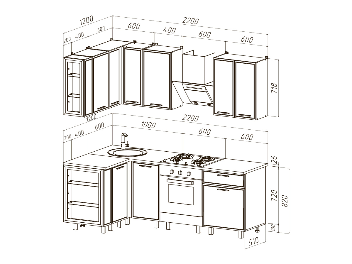 Кухня Бьянка 1,2х2,2м