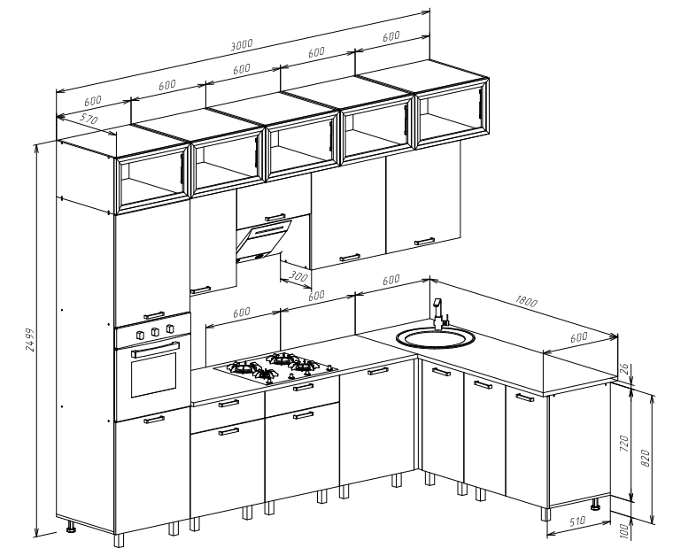 Кухня Техно 3,0х1,8/1080м Компоновка №8