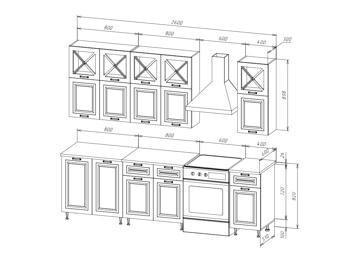 Кухня Констанция 2,0/900м Компоновка №4