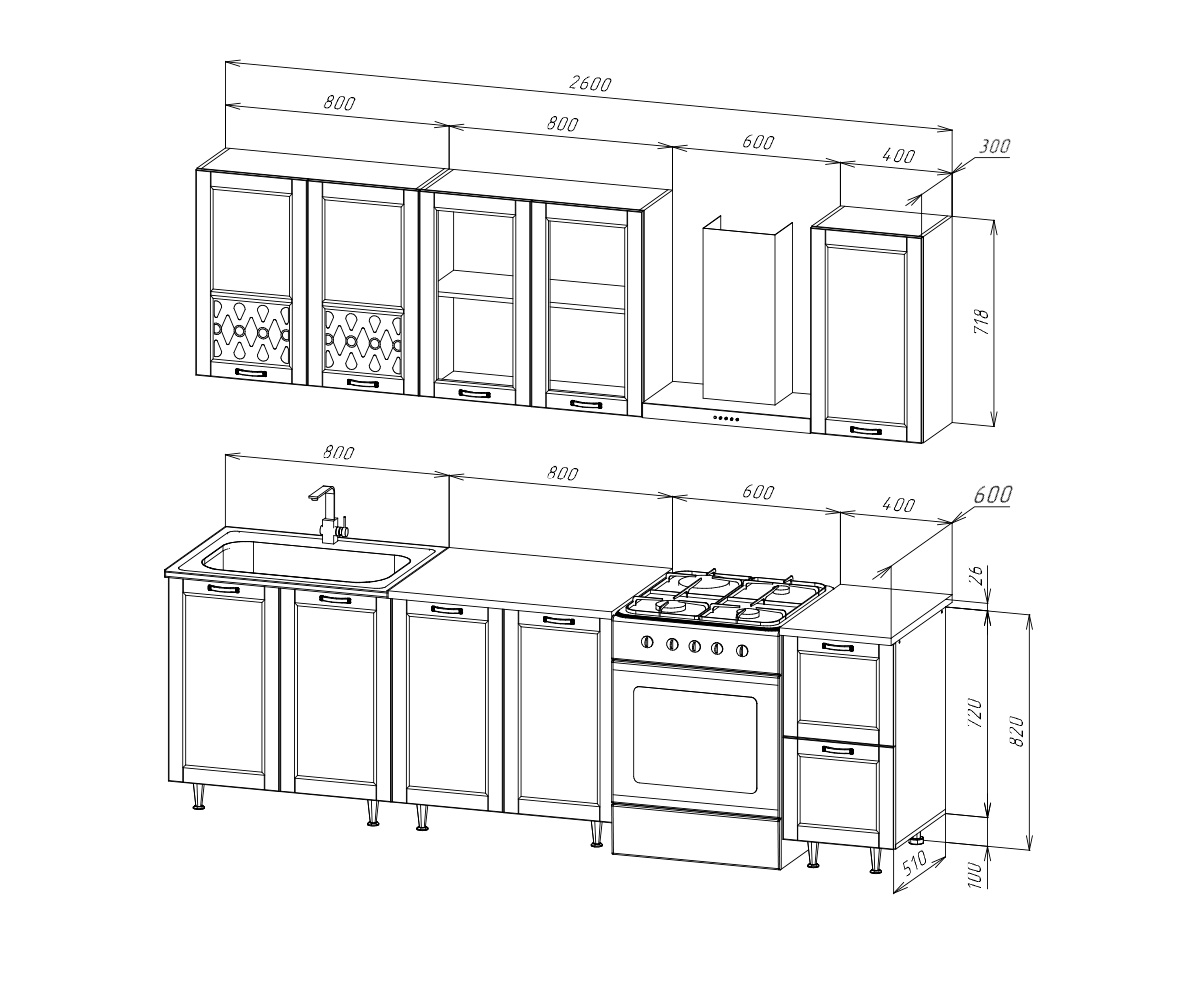 Кухня Милано 2,0м Компоновка №2
