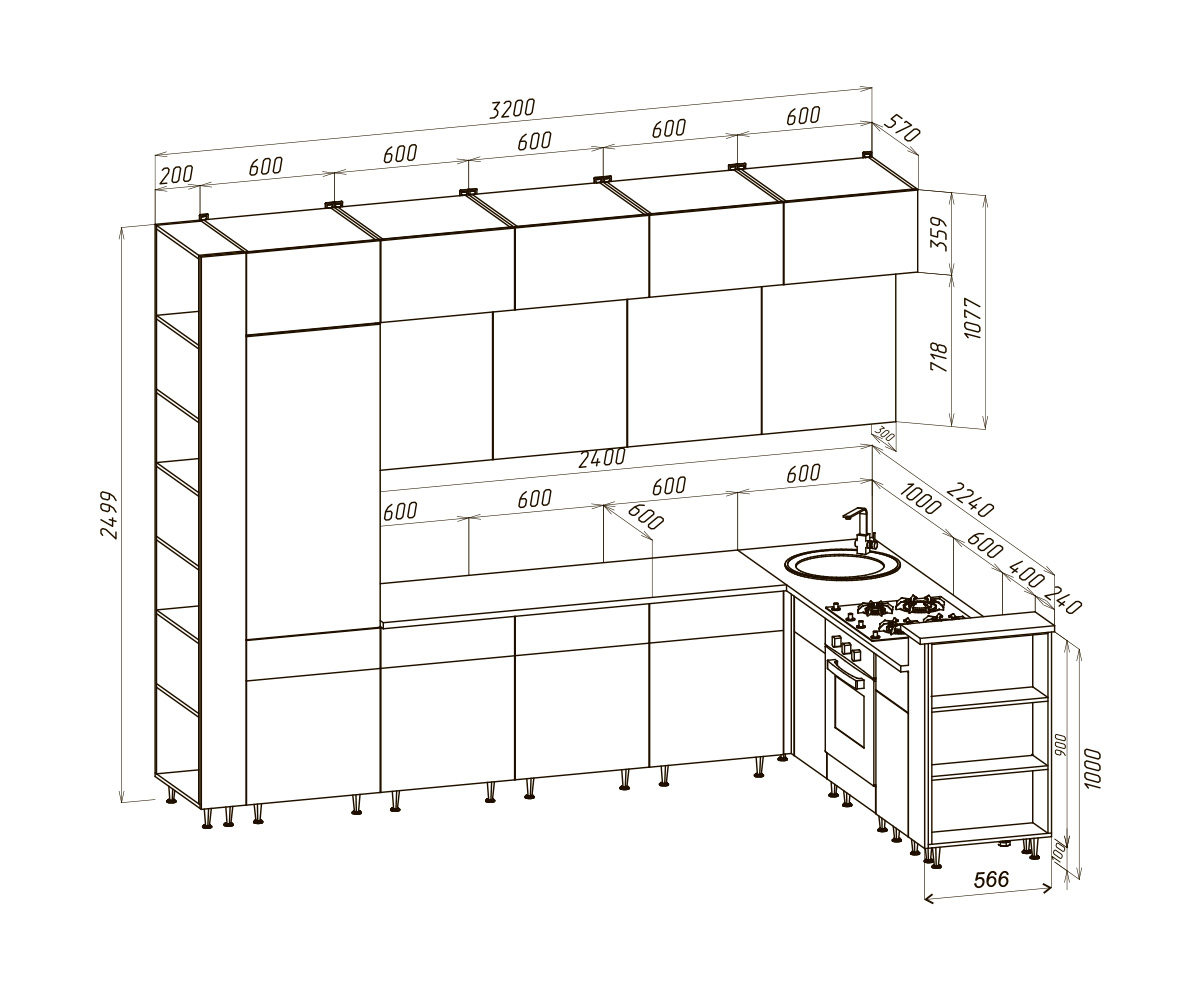 Кухня Техно-5 3,2*2,24м