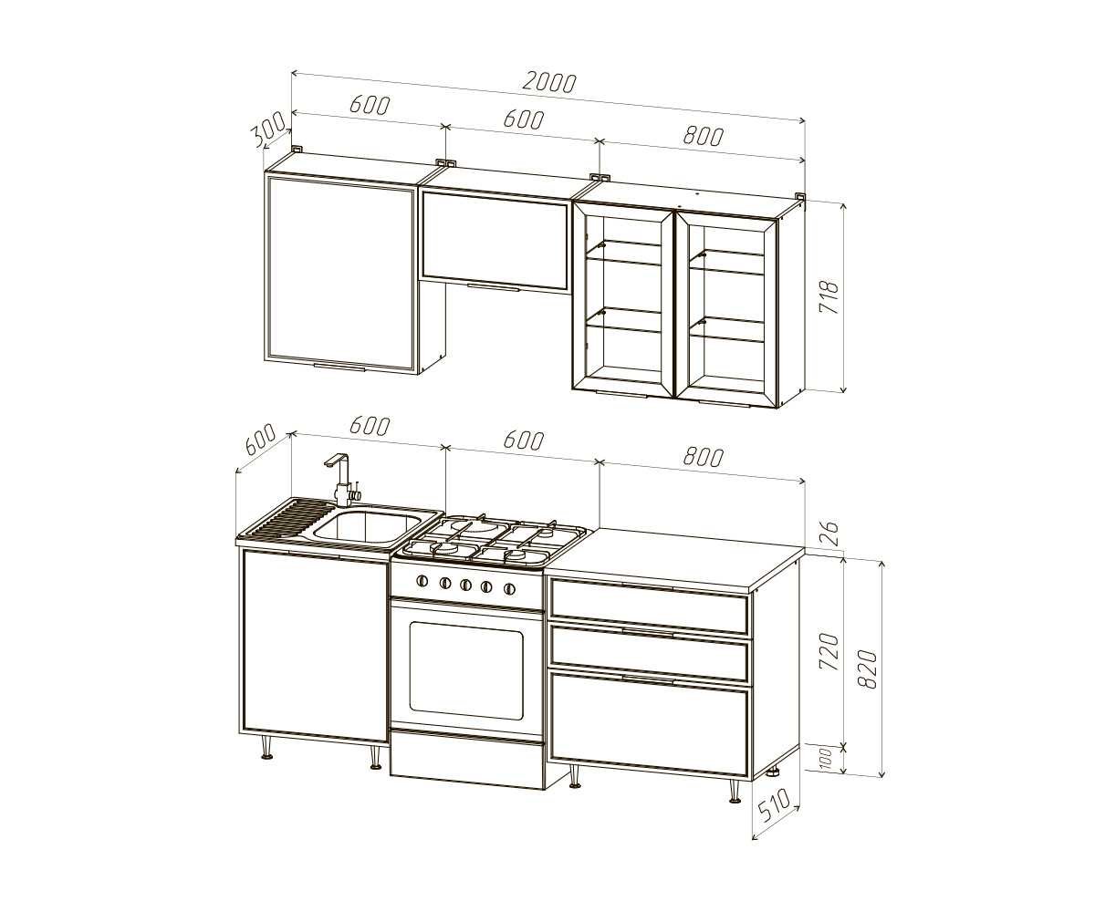 Кухня Николь 2,0м Компоновка №2